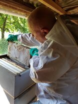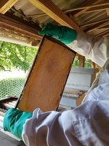 Nichts wie hin: Informationsveranstaltung, Anmeldung, Theorie und dann auch Praxis. Bei der Kursgebühr waren ein Ablegervolk zum praktischen Üben sowie Kursunterlagen enthalten. So konnte ich einerseits mit dem Ablegervolk die Ausbildung absolvieren und gleichzeitig bei meinen Wirtschaftsvölkern zusätzlich