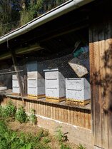 Wie zu sehen ist, haben unsere Bienen ihren Platz in einem Bienenhaus erhalten. Ein 'wandern' mit den Bienen zu unterschiedlichen Trachten wollte ich mir nicht antun.