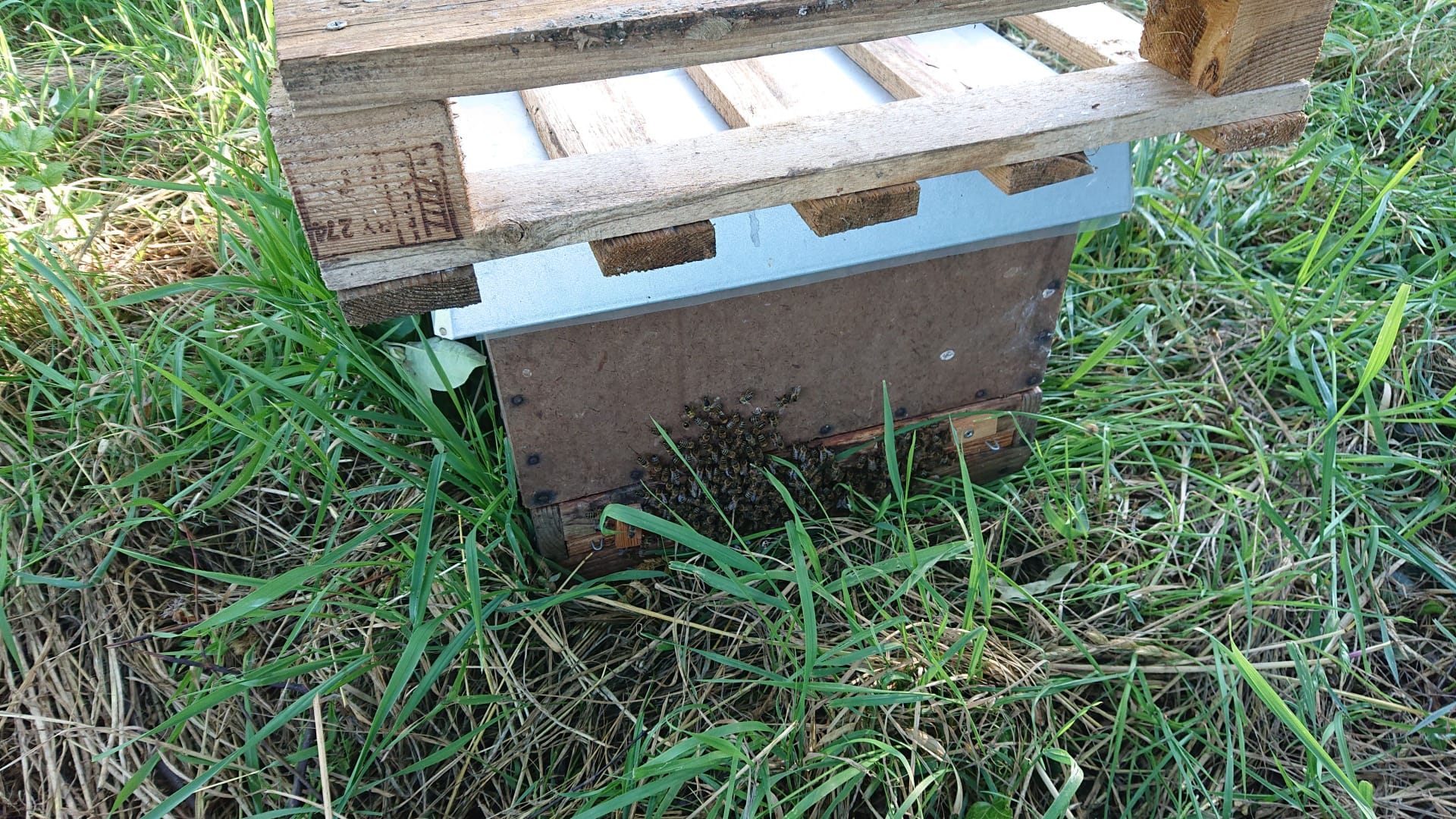 Meine Ableger auf die Palette, zurück in meinen Bienenstand, Leere Zarge, Wassersprühflasche, Handsäge, Bockleiter usw. eingepackt, zurück aufn Büschelhof und meinen Imker-Ritterschlag erhalten: Schwarm einfangen.